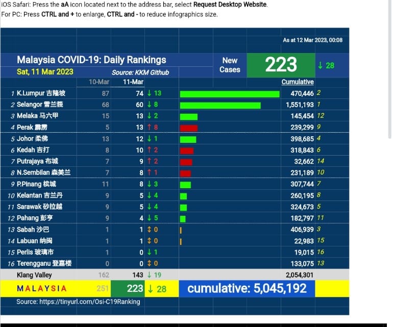 (八打灵再也11日讯)我国今日新增223宗冠病确诊病例,较昨日减少28宗,累计病例达到504万5192宗。