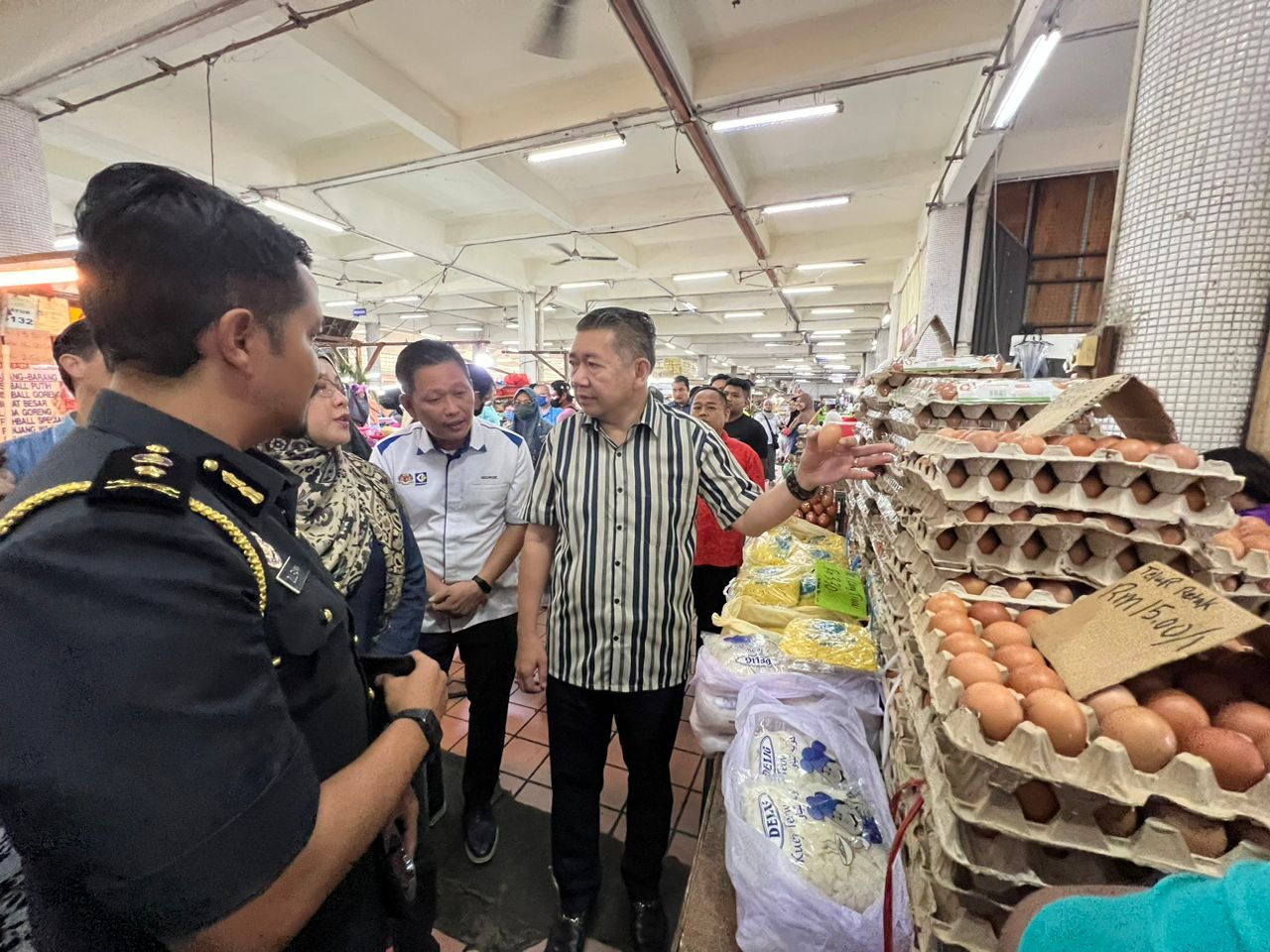 他今早与内贸部沙巴执法官员前往亚庇中央巴刹,视察贩商对于鸡肉与鸡蛋顶价措施(PHMAT)的遵守程度。他也在巴刹视察其他必需品和统制品的供应情况与时价,提前为来临斋戒月作准备。