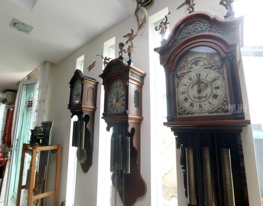 谈起古董钟的收藏,曾先生的父亲早年也收集中国制钟。然而他把我们带到德国钟的区域,就谈起自己因工作关系,常需要到德国公干,于是在当地的跳蚤市场,开启了收藏古董钟的奇妙旅程。“你会看到残旧、未经修复的古董钟就那样散落在地上,但仔细一看价钱却很合理,一开始就买了一两个回来玩玩。”
