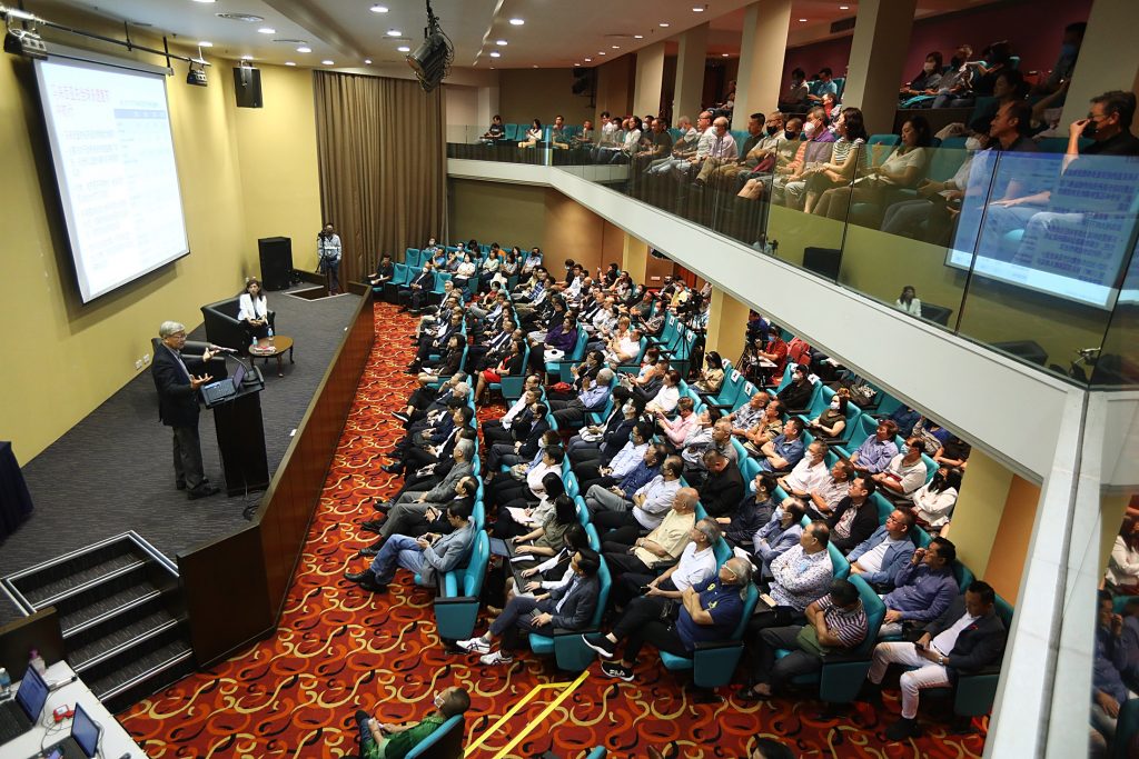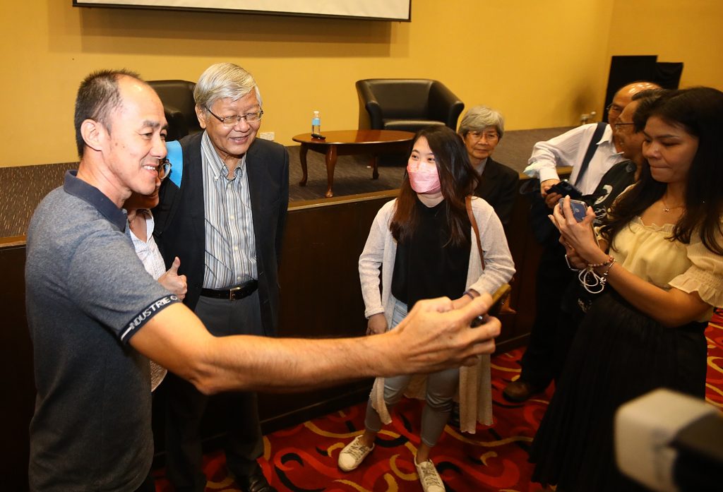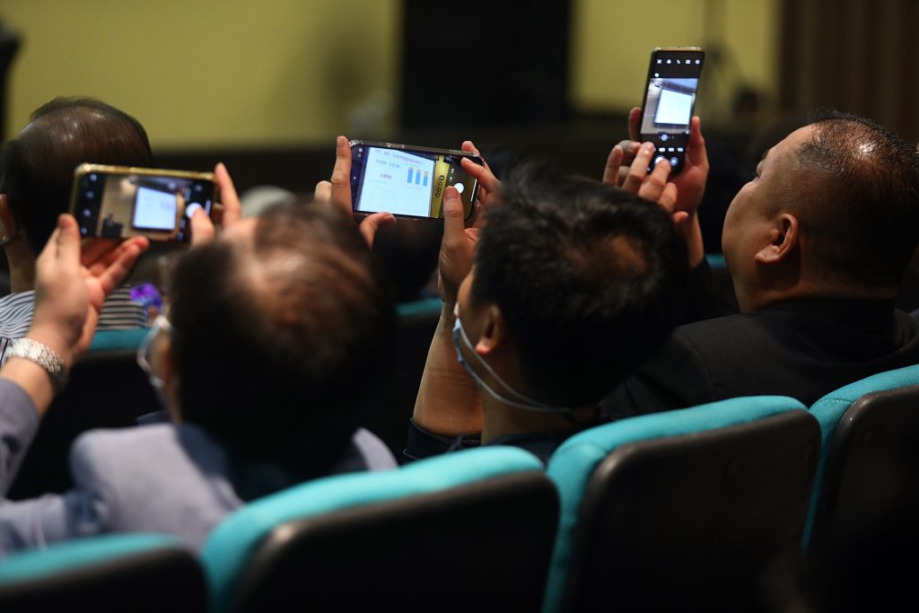 《东南亚讲堂(吉隆坡场)》邀来闻名遐迩的国际经济学家沈联涛主讲,现场观众纷纷拿起手机拍摄画面。(黄冰冰摄)
