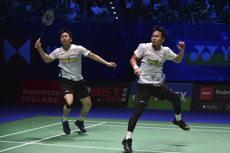 若印尼世界第一“双A组合”法加与莱恩随后也赢下中国组合何济霆与周昊东,印尼便将连续2年全英赛包揽男双冠亚军。