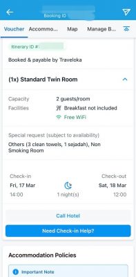 推特用户@iRaesmee发文指出,自己早前开长途车时,因为太累所以通过应用程式预定了酒店房间,并且完成付款。