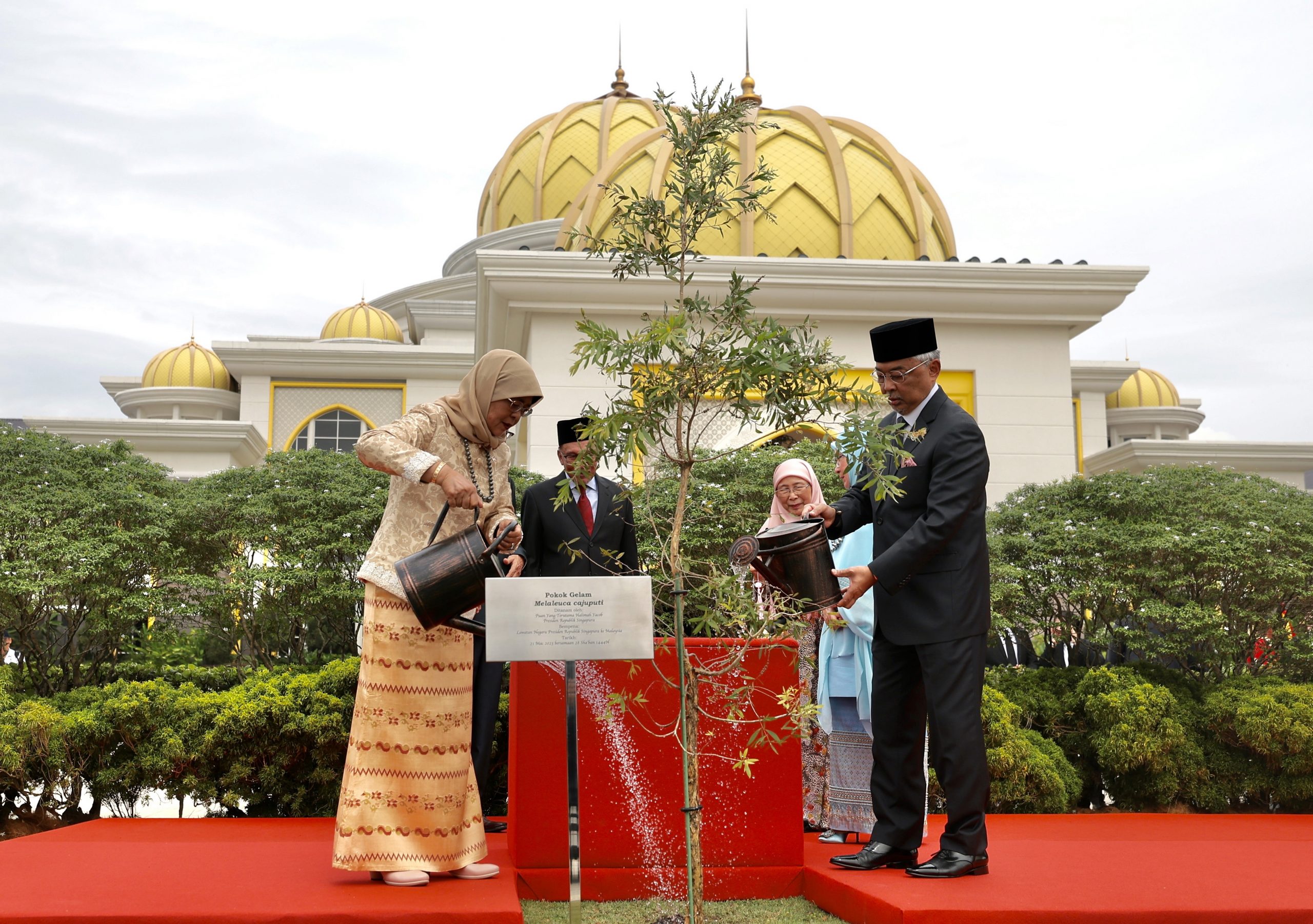 在这之前,哈莉玛也在欢迎仪式上检阅了仪仗队,以及出席植树仪式。