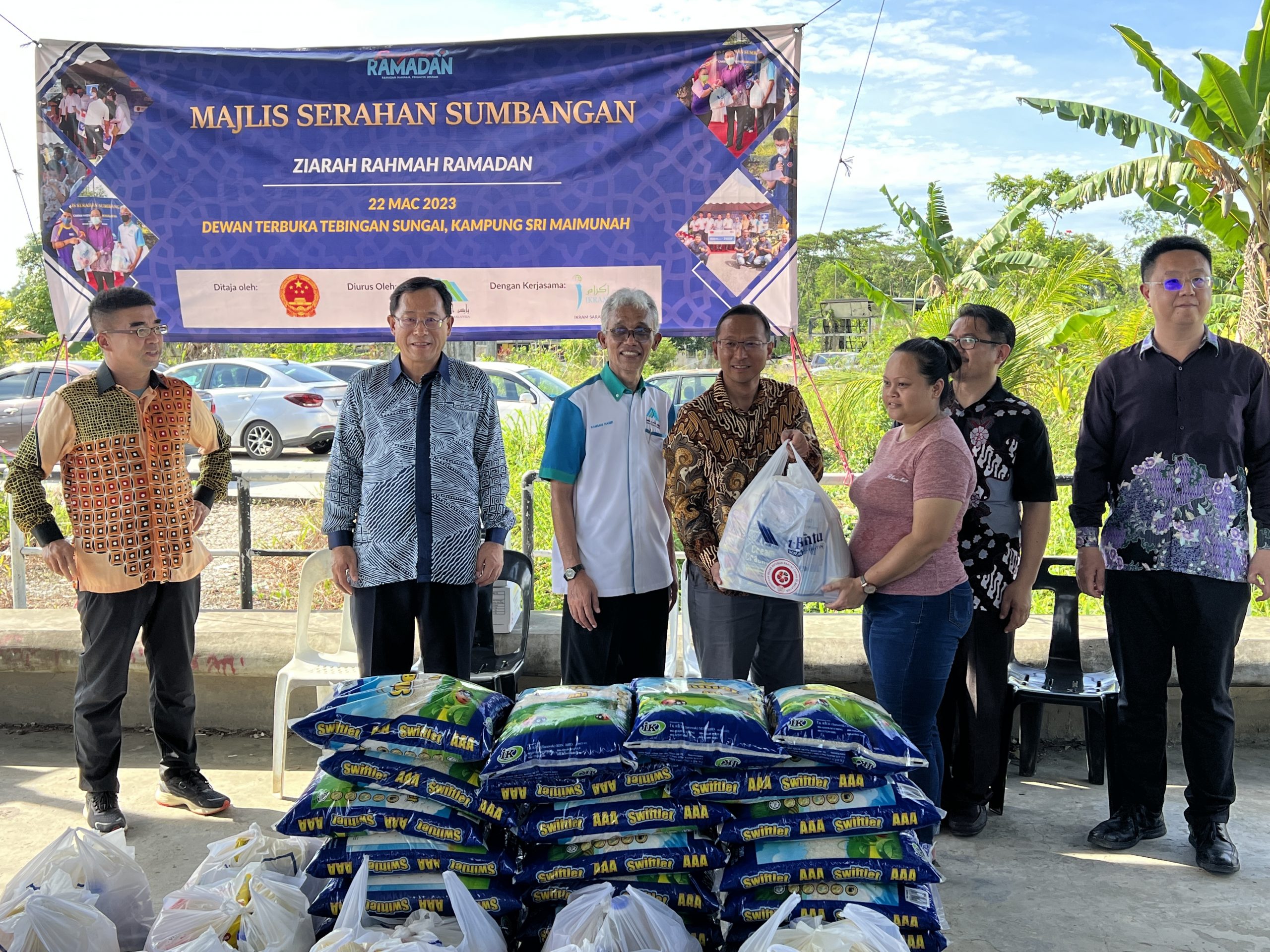 配合斋戒月的到来,中国驻马大使馆通过马来西亚伊斯兰友好协会基金会(Yayasan IKRAM Malaysia)移交物资给来自3个甘榜,即甘榜双溪勃利欧克(Kampung Sungai Periok)、甘榜盟都路和甘榜斯里迈慕纳的100户家庭。