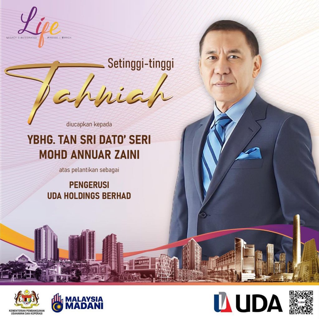 (八打灵再也23日讯)城市发展控股公司(UDA)宣布任命丹斯里莫哈末安努亚再尼为新主席,取代卸任的拿督诺丽莎阿都拉欣,即日生效。