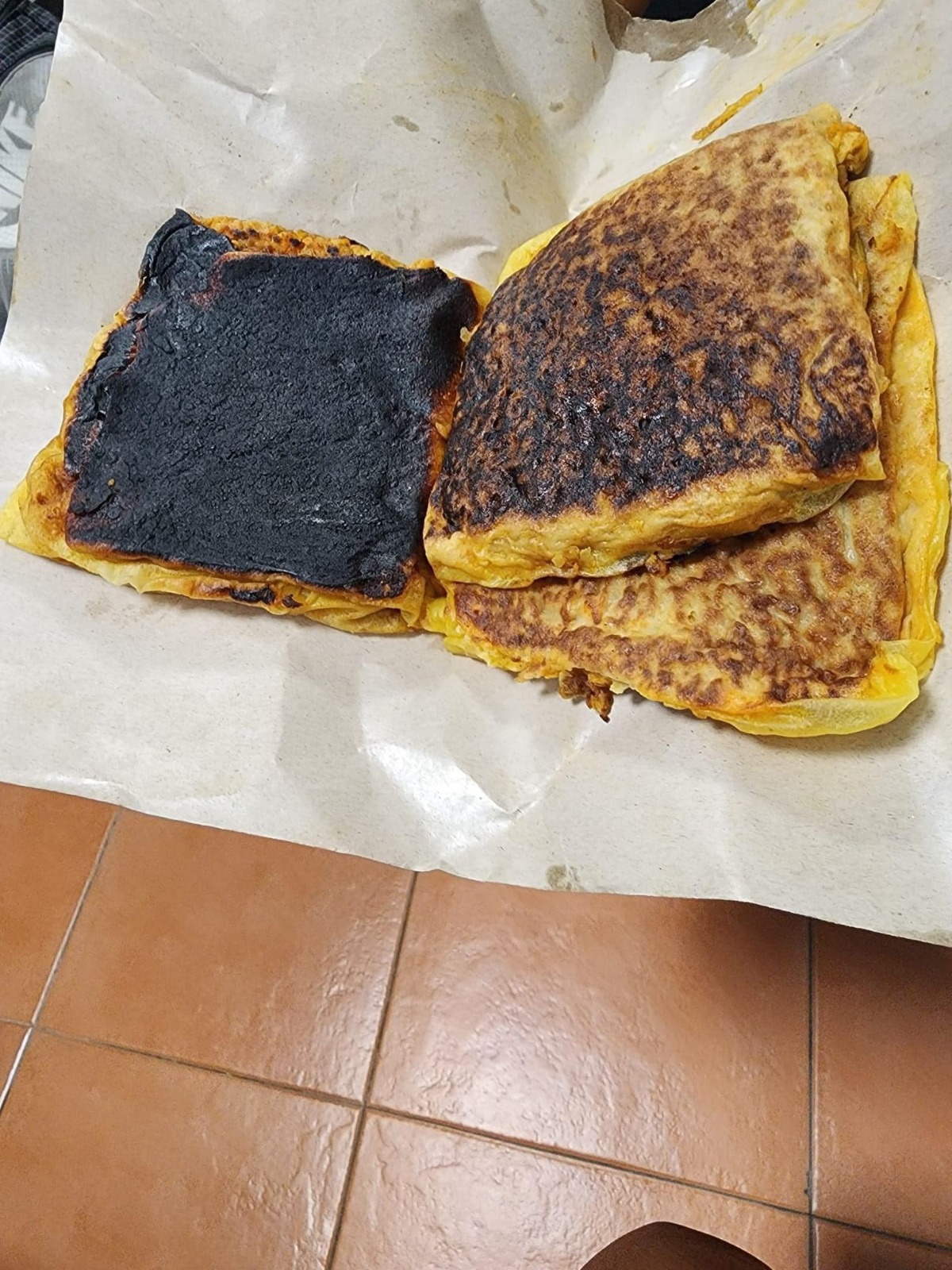 民众日前到斋戒月市集购买肉馅煎饼,回家准备大快朵颐时,才发现肉馅煎饼的另一面完全烧焦变黑了。