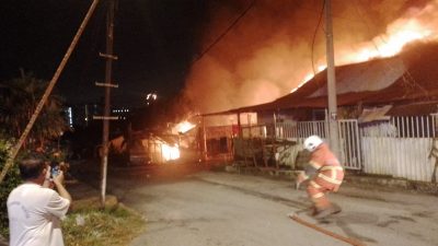 (吉隆坡24日讯)沙叻秀新村今晨遭火神光顾,以致5间半砖屋(rumah separuh kekal)陷入火海,而46名消拯员协力耗时逾1小时甫得以控制火势!