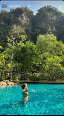 根据Gatita Yan及男友在傍晚6时发的Instagram限时动态,两人目前人在怡保一家渡假屋旅遊。