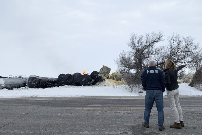 美国再传火车出轨 载乙醇槽车起火居民疏散