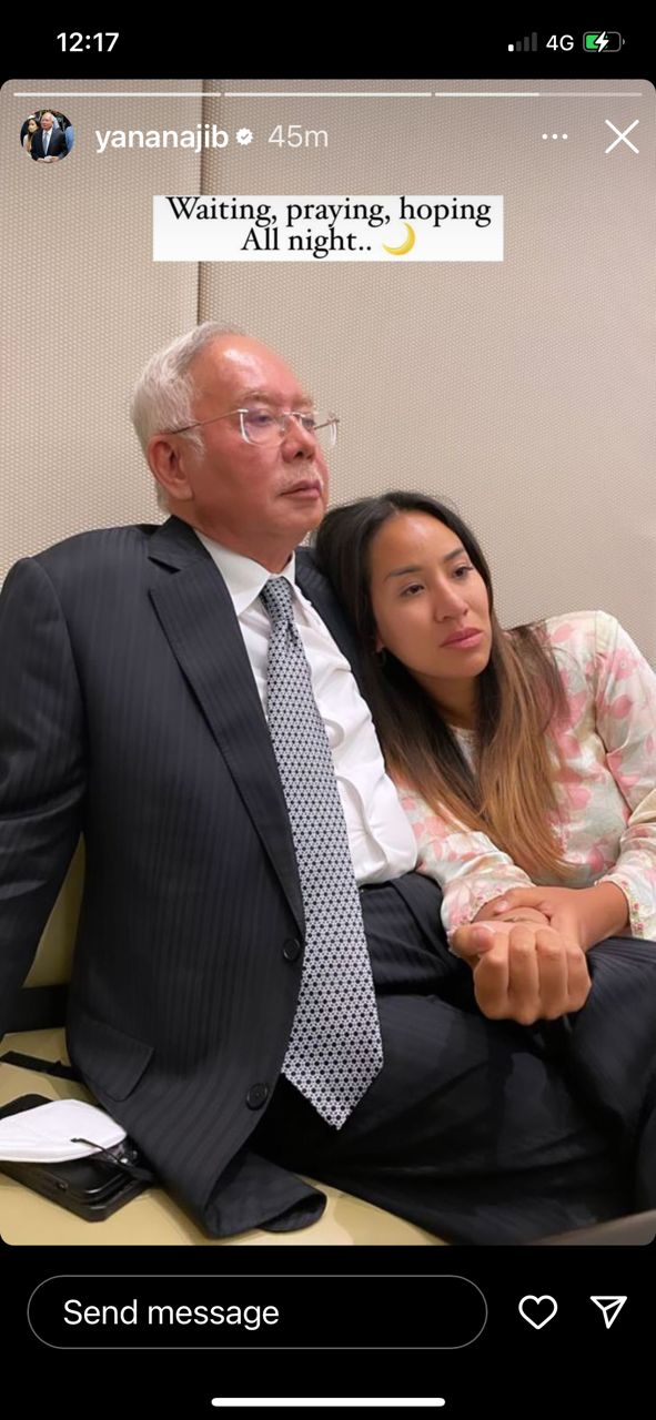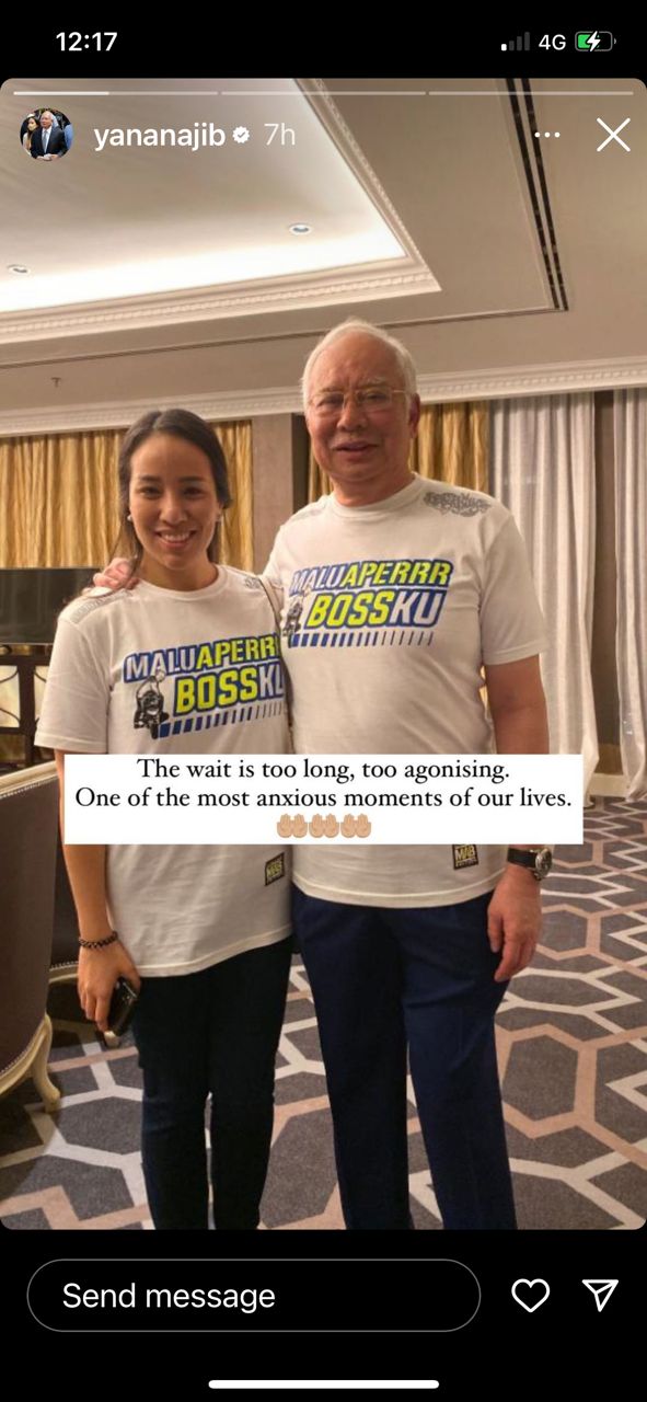 前首相拿督斯里纳吉寻求检讨SRC国际公司4200万令吉洗钱案的12年监禁和罚款判决申请裁决将于今日出炉,女儿诺雅娜昨晚难掩对父亲的思念,分享父女照并写下家属的焦虑心情。