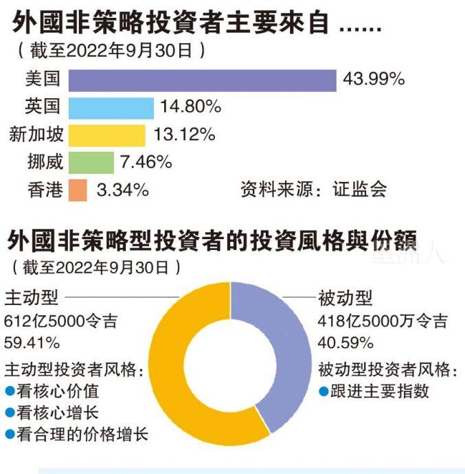 根据国籍来看,其中近一半(43.99%)的非策略型外国投资者是来自美国,接著是英国和新加坡,而且他们主要是投资在银行股。