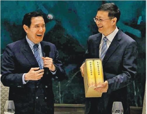 陈吉宁晚上宴请马英九时,准备了记载台湾历史的《台湾府志》珍本等礼物赠马作纪念。