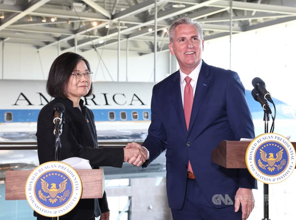 台湾总统蔡英文访问中美洲友邦危地马拉与贝里斯的行程间中,专机两次停靠美国,先访纽约,回程则在洛杉矶会晤众议院议长麦卡锡(上一任是去年8月访台的佩洛西)。两人是在大马时间周四凌晨1时,于里根图书馆举行闭门会议。