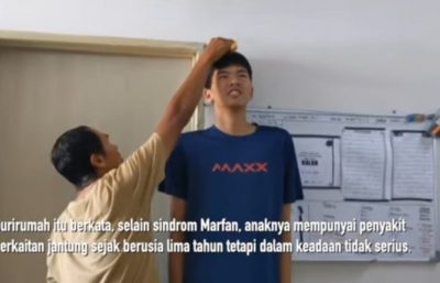 《大都会日报》报道,居住在槟城直落巴巷(Teluk Bahang)的16岁青少年慕哈末哈兹克患有一种罕见疾病—“马凡综合症”,让他拥有异于常人的身高。