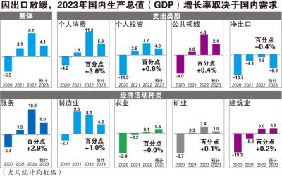 李兴裕也预计我国今年的国内生产总值(GDP)比去年整体下滑4.6%,降至4.1%。当中以净出口额(进出口额相减)最为明显,预计将再减少7.1%。