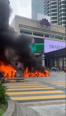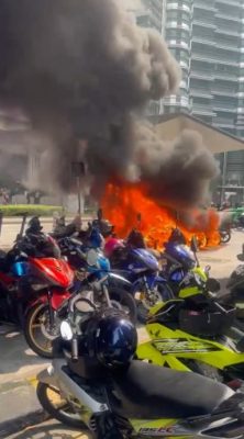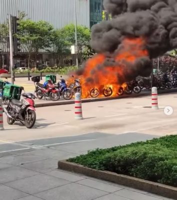视频 | KLCC广场前火警 17辆摩托车滑板车烧毁