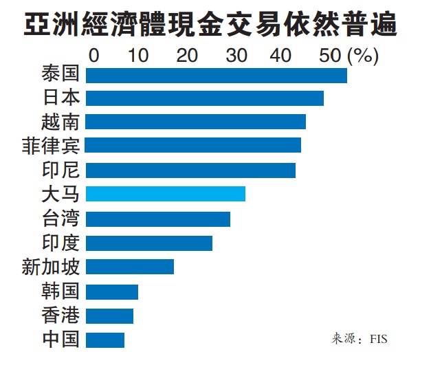 根据美国支付服务顾问公司FIS的数据,从2022年亚洲使用现金支付交易比重来看,以泰国的56%最高,其次为日本的51%及越南的47%,而大马则是超过30%。