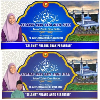 根据巫统新闻网站报道,诺沙比丽娜指出,吉打州行政议会在近期拍板议决,所有广告牌和横幅包括开斋活动横幅,都必须附加吉打州政府领袖的肖像。