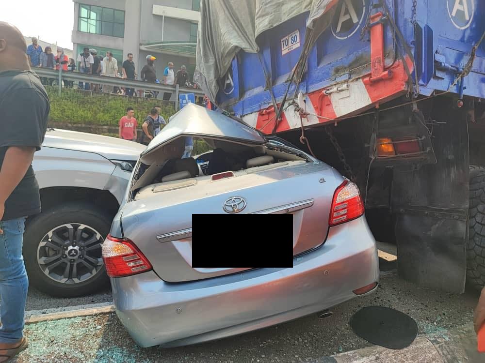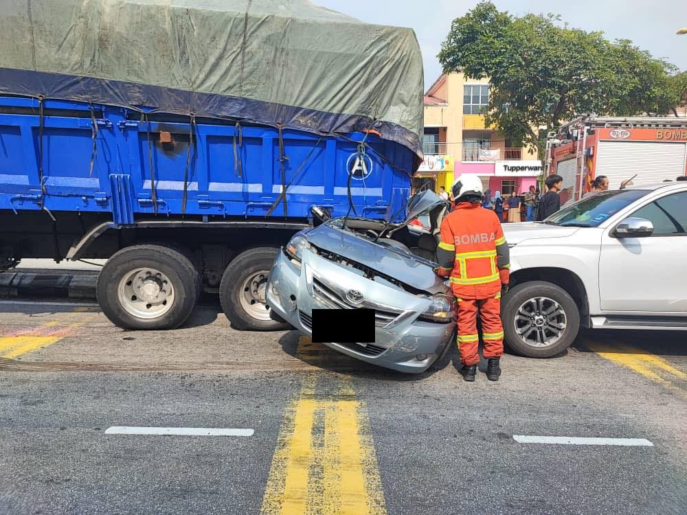 (八打灵再也18日讯)疑煞车器失灵,一辆停在交通灯前的罗里突然失控倒车撞及后面车辆,导致9车连环撞,所幸未酿及人命伤亡。