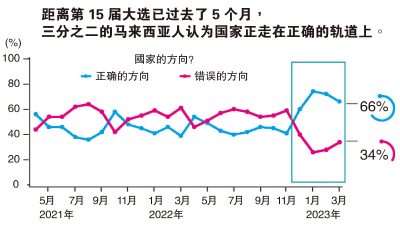 (八打灵再也19日讯)根据国际市场咨询公司益普索(Ipsos)发布的最新调查结果显示,新政府执政至今已有5个月,有三分之二的国人认为国家正走在正确的轨道上。