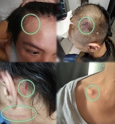 周永恒头部有多处伤痕需要鏠针。(取自因葵脸书)