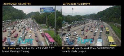4.31pm 鹅唛收费站前往云顶和彭亨方向,以及前往吉隆坡方向皆出现大塞车的情况。