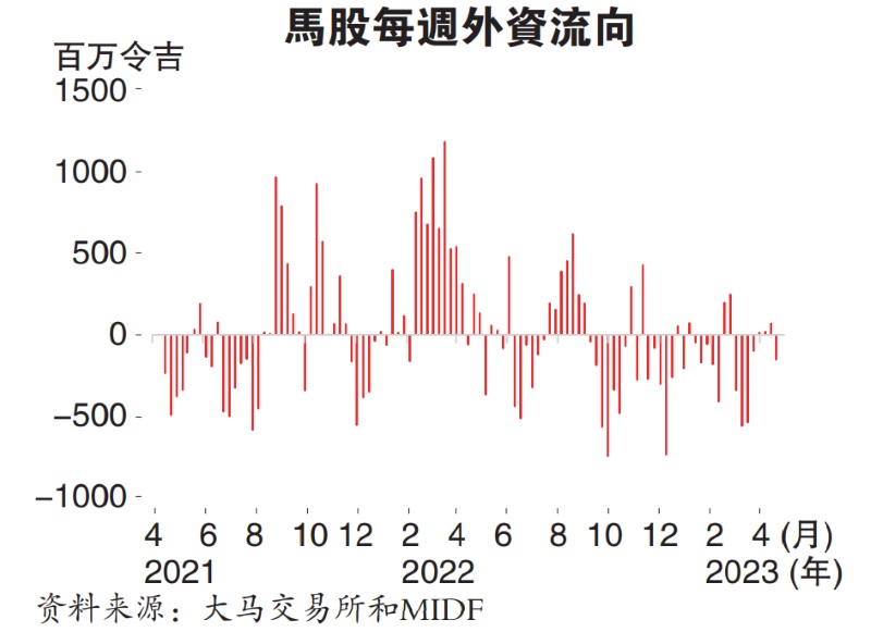 今年至今,外资累积净卖19亿3000万令吉马股,在16周之中有10周是净卖。