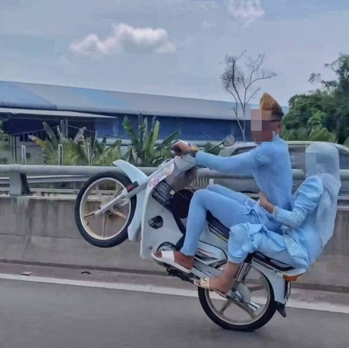 他说,根据社交媒体流传的短片,该名男子进行“后轮骑”时,还载着一名女子,两人身穿蓝色的马来衣,“表演”地点相信是在哥打峇鲁甘榜柏灵雅的巴西富地路。