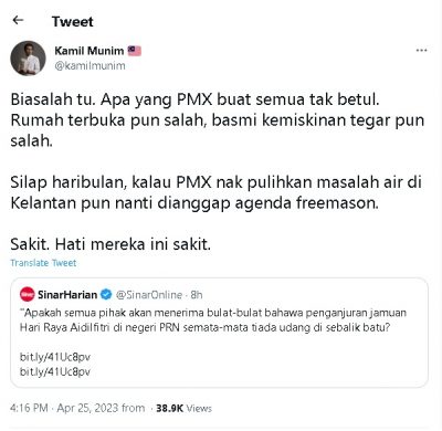 什么都不对,如果第10任首相想要解决吉兰丹水供问题,也会被视为是共济会的议程。”