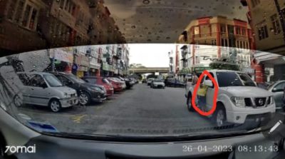 (八打灵再也27日讯)货卡司机左手握着驾驶盘驾驶,右手搂着人在司机车门外的小童,随着这惊险一幕被人拍下及视频在社交媒体流传后,已引起警方关注并开档调查。