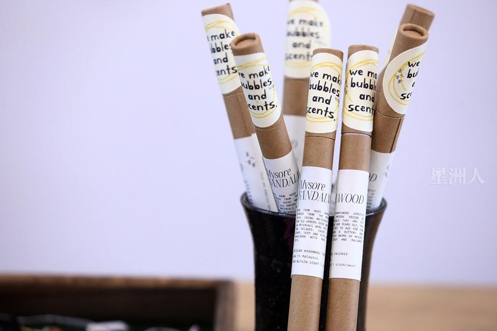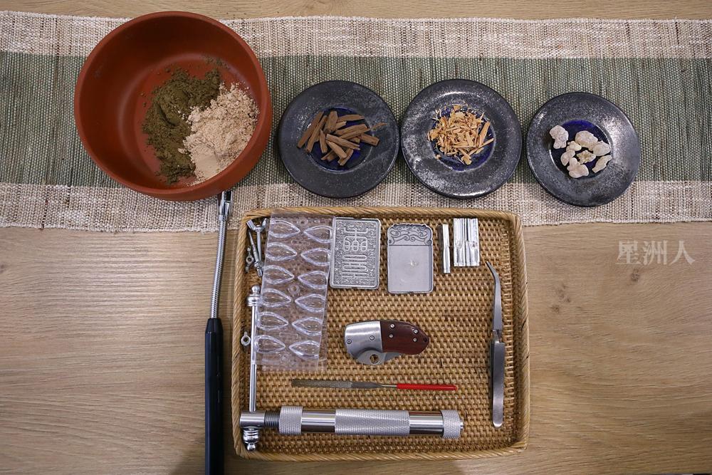 香按形态分为线香、盘香、塔香、锥香、印香、香丸等等。她解说,以檀香制作的线香无法量产,原因除了是手工制作之外,还需要时间凉置,以让香味变得温和。此外,线香凉置时间长亦以免成品出现断裂。“凉置越久,香味越耐。我通常收半年至一年,所以无法供应太多香品。”