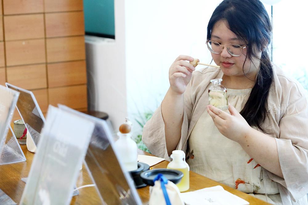 中学时期,丽艳妈妈接触到精油,耳濡目染之下,她对香气特感兴趣。一直到六七年前,她才开始调香。掌握调精油的知识后,她发觉精油调香有局限,所以去学制作手工皂,把精油加入手工皂后,使用起来,气味让人身心舒坦。