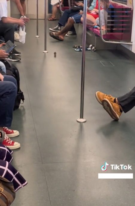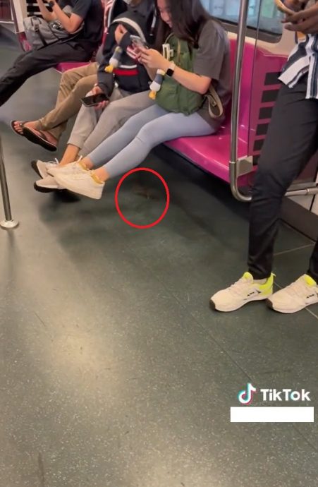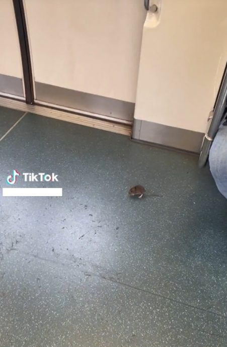 (新加坡29日讯)新加坡地铁(MRT)上竟然出现一只老鼠乱窜,然而车上乘客却非常冷静,还若无其事般抬起脚避免踩到老鼠。