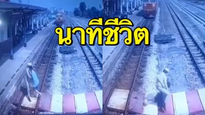 (曼谷讯)素叻他尼府渊沙县挽颂火车站工作人员危急时刻救下一名穿越轨道的妇人,挽救了一条生命,网民赞扬不已。