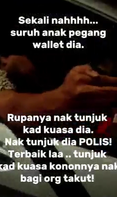 该段长约一分钟20秒的视频在脸书流传,从视频画面可见一名司机当时正在一边开车,一边吩咐其身旁的儿子出示疑是警察证,示意另一名司机停车。