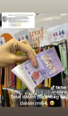 女子还称,礼品袋内只有袜子和一条头巾,总额不到60令吉,而收到的100令吉显然多过了礼品价值。