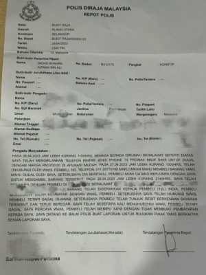 “发现不妥时,我要回手机,却被买主反过来索求2800令吉,才会归还电话。 ”