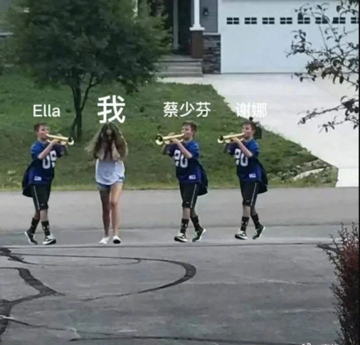 对此,Ella之后在微博发文回应,开玩笑表示:“你们有礼貌吗?谁要来给我大喇叭?”并放上梗图,图上吹着喇叭的3人分别标上了Ella、蔡少芬和谢娜的名字,中间摀住耳朵的“我”便是观众,粉丝看到梗图直接笑翻,并表示有她们3个在的地方就有快乐,并称3人是《乘风》中的“气氛组担当”。