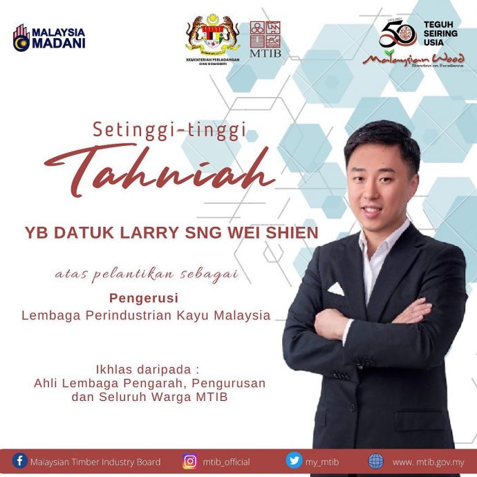 马来西亚木材工业局今天在官方脸书发文表示,该局所有成员祝贺和欢迎孙伟瑄受委该局主席,而大马全民党也在脸书发文祝贺他履行职责愉快。