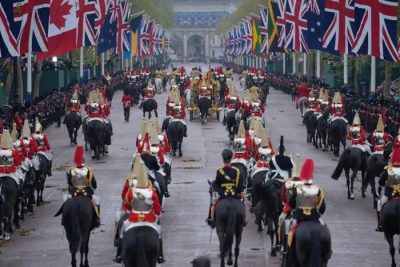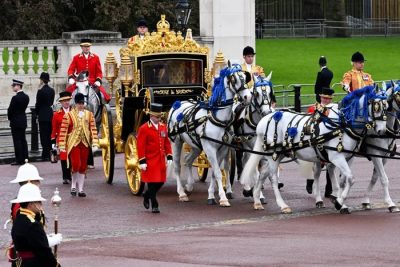 8.12pm: 现在有一个从西敏寺到白金汉宫的加冕仪式游行。国王的黄金马车已经离开了西敏寺。其中包括英国有史以来规模最大的阅兵式之一,国防部提前向媒体发送了一份非常详细的106页关于他们参与的简报,其中说大约有7000名人员将参加全国各地的仪式活动。