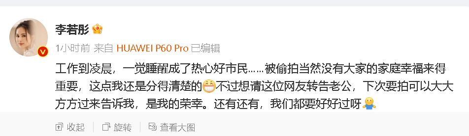 偷拍女星照片遭妻疑出轨 李若彤在线帮人夫辟谣