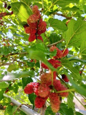 在母亲悉心照料下,桑树茁壮成长,平时修剪的当儿,她将叶子晒干,收集后给回来的孩子冲泡当茶喝,多余的还能让孩子带回去冲泡。修剪后的桑树终于开花结果了。看到红艳艳的桑葚让人垂涎欲滴,采下冲洗后就可以送入口,桑葚甜酸清香,还能搅拌成果酱,如同草莓般美味。大伙儿吃得开心和安心,话题总绕着桑葚,母亲看到了也沾沾自喜,无限光荣。自己的付出,能让孩子们开心,就是母亲最大的满足。