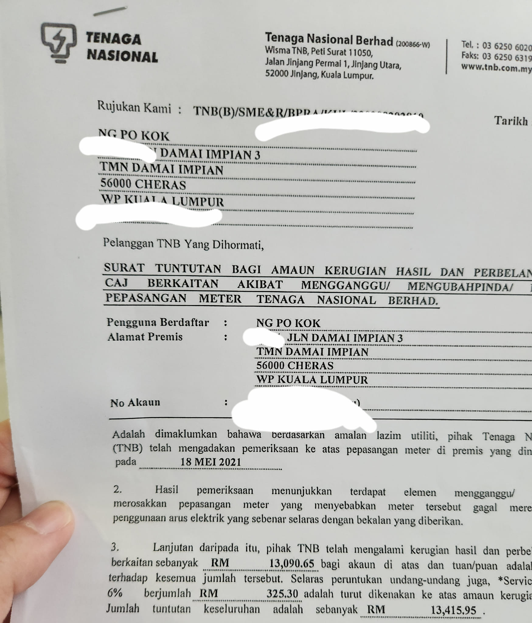 “冤枉的是,当年出售该单位,需要缴付7000令吉的电费欠款时,国能并没有告知我,该单位的电表被动手脚,需要支付1万3000令吉的罚款,导致如今还需要缴付罚单和面对提控,花费大笔款项解决此事。”