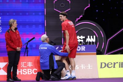 安赛龙在以2比1领先的时候就疑似拉伤左腿,当时他在李梓嘉杀球时就手抚左腿并未回击,之后他在一次来回拍中突然不接球走去场边叫医疗暂停,喷药左大腿,回来接开球就退赛。