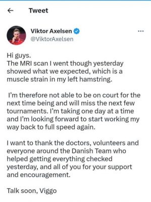 “我现在会专注在每一天养伤,期待自己痊愈复出的那一天,我要感谢医生、志愿者和丹麦团队的每一人。”
