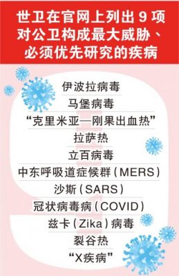 世卫在官网上列出9项对公卫构成最大威胁、必须优先研究的疾病,这些疾病有可能在区域蔓延,而且还没有足够的应对措施,因此有可能酿成下一波大流行,其中最令人担忧的是“X疾病”。