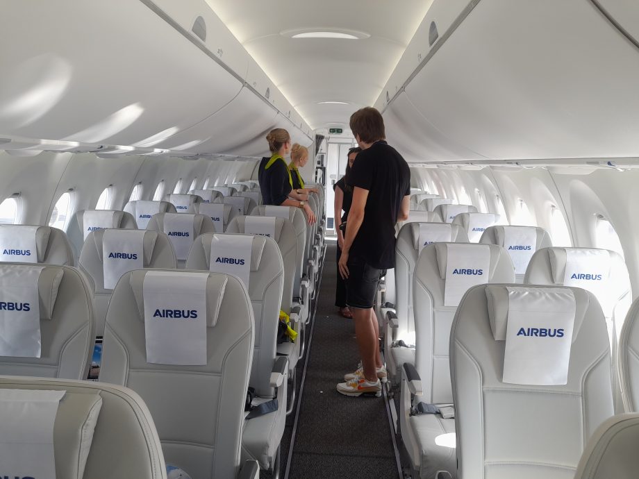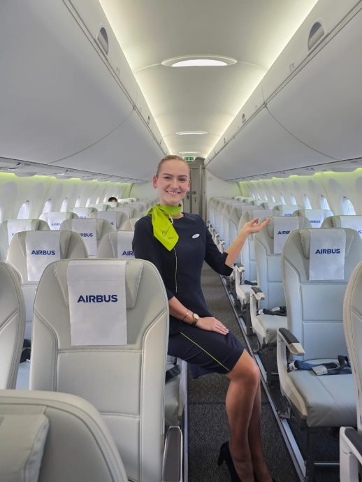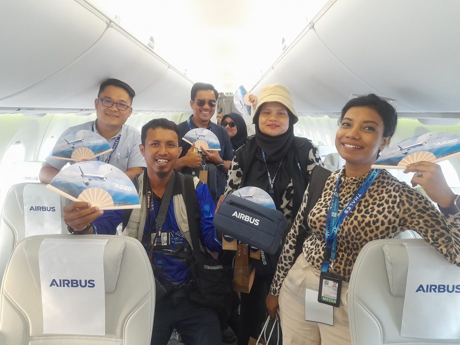 配合2023年浮罗交怡国际海空展,空巴公司带来全新的A220单走道飞机。这架飞机在展会首日进行静态展示,并邀请潜力业界公司和媒体代表体验1小时的试飞之旅;星洲日报记者也获得机会乘坐这架号称节省25%燃油的现代化飞机。