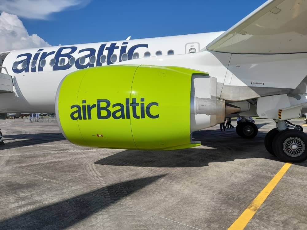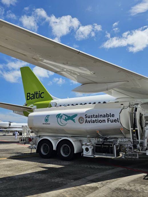 本届浮罗交怡国际海空展亮相的这架飞机,是由空巴公司向来自拉脱维亚波罗地海航空(Air Baltic)租用,之前飞抵砂拉越,而砂州政府宣布有意生产永续性航空燃料供该机型飞机用途,而这架飞机是从古晋飞抵此地。