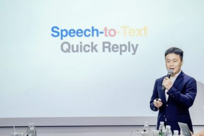 在采访过程中,他以WhatsApp为例,向【e潮】示范这项功能。当用户收到讯息,外屏会弹出提示。点开之后,选择“Tap to speak”就能用语音回复。无论是华语、英语或广东话,系统都能精准辨识,再转换成文字。