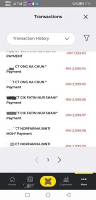 根据她分享的银行户头交易记录,她至少被盗提7次,且都是汇款到钱驴的私人户头。